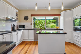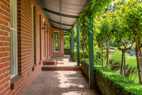 The brick residence reflects Victorian-inspired architecture, complete with a full wrap-around verandah and thoughtfully planned interiors that embrace the surrounding outlook. Floor-to-ceiling windows draw natural light into every room, while a spacious kitchen and family area form the central hub of the home. A separate lounge with a wood-fired heater and a dedicated dining room provide additional spaces for relaxation and entertaining. Hardwood floors, quality wall panelling and soft carpeting to the bedrooms enhance the home's warmth and comfort.