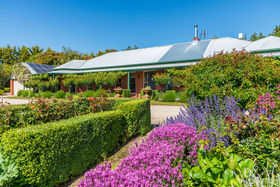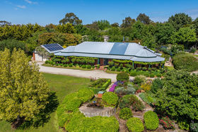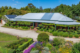 Accommodation includes four generously sized bedrooms and two bathrooms. Practical features such as reverse cycle heating and cooling, 3.1kw capacity solar panels, substantial water storage (100,000 litres) and a large shed with workshop further elevate the property's appeal. Outdoors, the grounds are a true highlight clipped hedges, established plantings and beautifully maintained gardens surround the residence, while a picturesque dam creates a serene focal point at the entry.