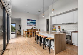 The kitchen opens to the main living area, creating an easy flow throughout the home. With a long island bench, quality appliances and plumbed fridge space, it's a practical, well considered space that works beautifully for daily life.